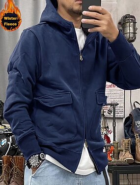 Hombre Sudadera Sudadera con capucha y cremallera completa Sudadera con capucha de lana Sudadera con capucha forrada de polar Rojo tinto Negro Blanco Azul Marino Azul Real Con Capucha Plano Retazos