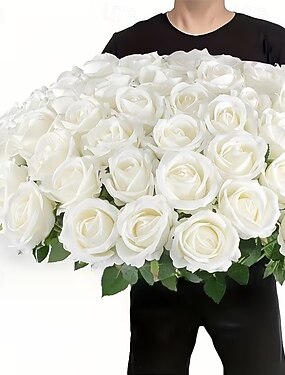 50 rosas blancas: flores artificiales realistas, perfectas para hacer ramos de boda, regalos de novia y elegantes arreglos florales. Ideales para bodas, San Valentín, aniversarios y decoraciones