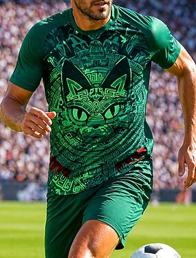 Camiseta de fútbol para hombre con estampado de gato azteca, estilo mexicano, deportiva, de manga corta, para verano, con protección UPF 50, de secado rápido y transpirable, ideal para aficionados al