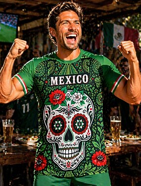 Camiseta de fútbol para hombre con calavera de azúcar de México, Día de Muertos, estampado floral, camiseta deportiva transpirable, UPF 50, secado rápido, 2026, para aficionados al fútbol, torneos,