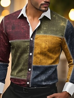 Hombre Bloque de color Retazos Camisa de raso Camisa para Vestido Abotonar la camisa Manga Larga Moda informal Vacaciones Diario Fiesta de Noche Verano Primavera Cuello Vuelto Camisas con cuello