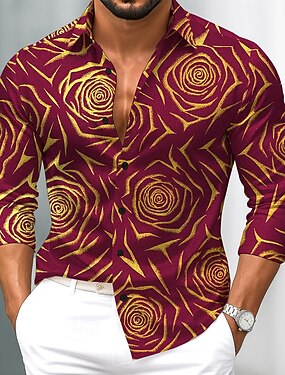 Hombre Estampado Floral Rosa Flores Camisa Camisa de raso Camisa para Vestido Manga Larga Moda informal Vacaciones Uso Diario Verano Primavera Otoño Cuello Vuelto Impresión 3D Camisas con botones