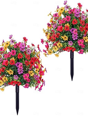 Paquete de 2 estacas de flores artificiales para decoración de exteriores, 60 cm (24 pulgadas), estacas de jardín multicolores para patio y césped, plástico resistente que no se decolora, decoración para todas las estaciones.