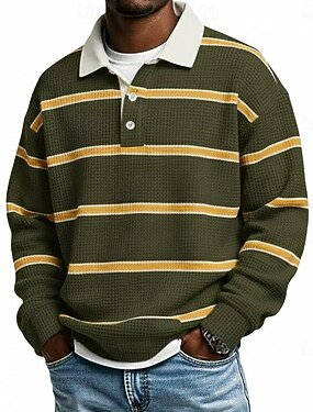 Hombre A Rayas Tiras horizontales Camisetas polo con diseño de gofre Polo de rugby Camisetas polo de rugby Manga Larga Camisas de polo Diseño Ropa deportiva Casual Escuela Ropa Deportiva Ropa