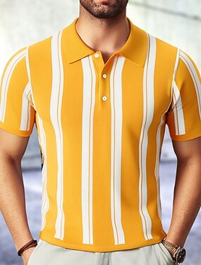 Hombre Polos con botones Camiseta de golf Casual Deportes Diseño Manga Corta Moda Básico Rayas Retazos Botones Verano Amarillo Polos con botones