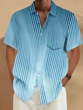 Hombre Geométrico Degradado A Rayas Camisa Camisa de verano Abotonar la camisa Manga Corta Moda informal Exterior Vacaciones Uso Diario Verano Primavera Cuello Vuelto Impresión 3D camisas con cuello