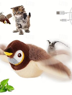 Juguete de pájaro chirriante recargable para gatos &Perros: diseño duradero de plumas artificiales con efecto de sonido realista, recargable por USB, todos los tamaños de raza, juguete interactivo