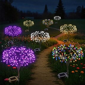 Guirnalda de luces solares con forma de diente de león y fuegos artificiales - 2 modos de iluminación para jardín, césped, camping, decoración de fiestas (1 unidad)