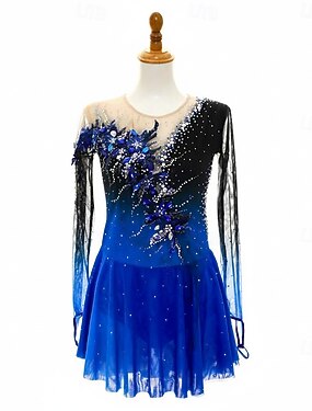 Vestido de patinaje artístico Mujer Chica Patinaje Sobre Hielo Vestidos Azul Real Retazos Espalda Abierta Malla Licra Alta elasticidad Entrenamiento Competición Ropa de Patinaje Clásico Manga Larga