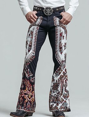 Hombre Geométrico Étnico Floral intrincado Pantalones de discoteca Pantalones de campana de los años 60 y 70 Media cintura occidental retro de la vendimia Exterior Vacaciones Bolsillos laterales