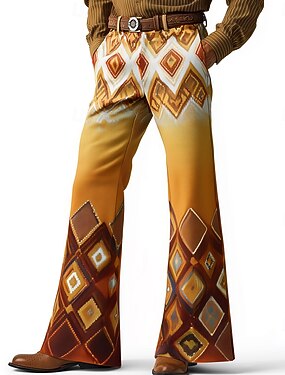 Hombre Diseño Geométrico Étnico Pantalones de discoteca Pantalones de campana de los años 60 y 70 Media cintura occidental retro de la vendimia Exterior Vacaciones Casual Bolsillos laterales