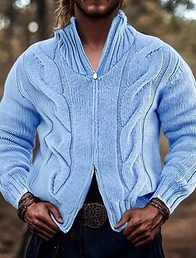 Hombre Chaqueta de Punto Cárdigan Jersey con cremallera Chaqueta suéter Suéteres de Navidad Fornido Tejer Cremallera Estriado Color sólido Cuello Mao Navidad Prendas de punto Ropa Cotidiana Cita Ropa