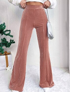 Mujer Perneras anchas Pantalones de Pana pantalones Ropa de calle Casual Longitud total Cintura Media Plano Cintura elástica Confortable Exterior Vacaciones Noche Vino Azul pavo real Rosa Caqui Otoño