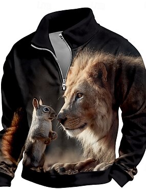 Hombre León Sudadera 3D Caza Escote Chino Exterior Trabajo Regalo Negro Gris Cremallera Otoño Invierno Diseñador S M L XL XXL XXXL