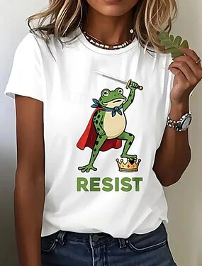 Mujer Camiseta Estampado Graphic Animal Vintage Elegante Clásico Manga Corta Cuello Barco Escote Redondo Tops regulares Diario Ceniza Negro Blanco Verano Primavera