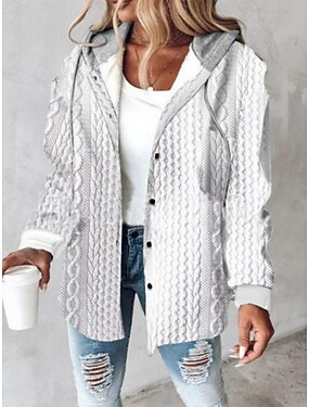 Mujer Chaqueta casual Chaqueta con capucha Cómodo Transpirable Botones Casual Color sólido Vacaciones Calle Ropa Cotidiana Noche Botonadura Simple Regular Con Capucha Ajuste regular Manga Larga Ropa