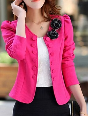 Mujer chaqueta Cómodo Transpirable Bolsillo Casual Plano Formal Oficina Calle Casual Botonadura Doble Regular Cuello Vuelto Ajuste regular Manga Larga Ropa de calle Negro Azul Piscina Fucsia Verano