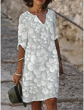 Mujer Vestido Midi Vestido informal Vestido Estampado Moda Moderno Diario Playa Fin de semana Ajuste regular Floral Manga 3/4 Cuello Barco Amarillo Morado Gris Verano Primavera Otoño