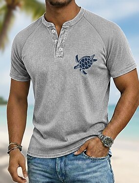 Hombre Graphic Cosecha Lavado Remera de algodón Tee Top con cuello henley Manga Corta Vintage Design Casual Casual Diario Exterior Verano Primavera Todas las Temporadas Azul Claro Púrpura Gris Henley