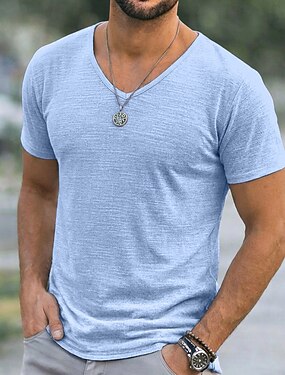 Hombre Camiseta Camisa manga corta Camiseta superior Camiseta de lino Manga Corta Escote en Pico Verano Primavera Color sólido Tira de pozo Ropa de calle Elegante Casual Puro Casual Diario Exterior