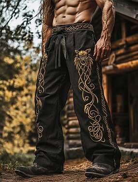 Hombre Bloque de color Estampados Pantalones Pantalones casuales Pantalones de verano Media cintura Estilo Étnico Retro Antiguo Casual Diario Festivos Correa Cintura elástica Impresión 3D Primavera