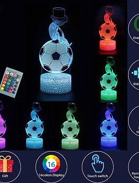 Luz nocturna de fútbol 3D acrílica, diseño de fútbol 2026, control táctil, dos colores, regulable con temporizador, control remoto, USB &Lámpara de noche LED alimentada por batería AAA para