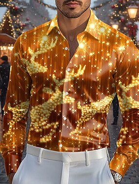 Navidad Hombre Reno Luz de Navidad Camisa Camisa de raso Camisa para Vestido Manga Larga Moda informal Exterior Fiesta Festivos Primavera Otoño Cuello Vuelto Impresión 3D Camisas con botones Rojo