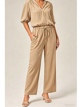 Mujer Pantalones de satén Chinos Corte Recto Ropa de calle Casual Longitud total Media cintura Plano Correa Cómodo Rígido Diario Exterior Vacaciones Marfil Otoño Invierno Holgado