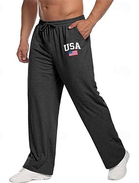 Hombre Pantalones de Deporte Pantalones Pantalones deportivos de pierna recta Correa Bolsillo Cintura elástica Bandera estadounidense de los Estados Unidos Comodidad Deporte Diario Moda Casual Negro