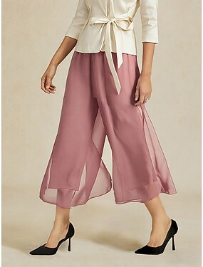 pantalones rectos de satén sedoso color rosa esmeralda