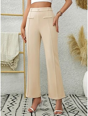 Mujer Chinos Pantalones Corte Recto Elegante Moda Ropa de calle Longitud total Alta cintura Plano Confortable Suave Cómodo Rígido Negocio Oficina Trabajo Azul marino Negro Albaricoque Verano