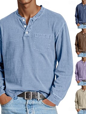 Hombre Henley Shirt Camisa 100% algodón con lavado ácido camiseta Manga Larga Plano Cosecha Retro Antiguo Casual Estilo retro Prenda teñida Lavado Henley Casual Primavera Otoño Todas las Temporadas