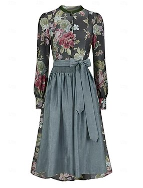 Retro Antiguo 1950s Rockabilly Mediodía Vestido Cóctel Un vestido de línea Vestido acampanado Talla Grande Corte A Escote en Pico Disfraz Mujer Vacaciones Reunión de Antiguos Alumnos Fiesta y Noche