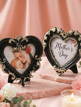 Marco decorativo en forma de corazón de resina negra y dorada para el Día de la Madre, expositor de fotos pintado a mano, decoración de mesa para el hogar, fiestas, hoteles, restaurantes, accesorios