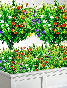 8 paquetes de flores artificiales de geranio resistentes a los rayos UV, plantas artificiales de color rosa intenso con vegetación para decoración de interiores, exteriores, hogar, jardín y bodas.