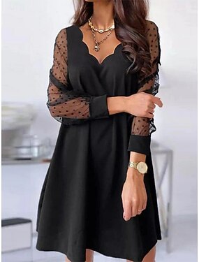 Mujer Mini vestido Vestido de una línea Casual Diario Ajuste regular Plano Manga Larga Escote en Pico Negro Primavera Otoño