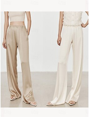 Mujer Perneras anchas Chinos Corte Recto Elegante Vacaciones Vintage Longitud total Alta cintura Color sólido Retazos Bolsillo Cintura elástica Confortable Cómodo Transpirable Rígido Diario Hogar