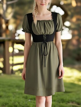 Retro Antiguo Medieval Renacimiento Vestidos Vestirse con demasiada elegancia dama Vikingo élfico Disfraz Mujer Celta Fantasía Vacaciones Mascarada Casual Diario Adulto Vestido