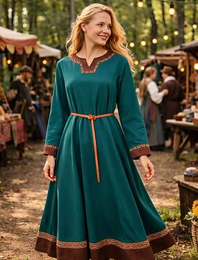 Retro Antiguo Medieval Renacimiento Vestidos Vikingo irlandesa Bloque de color Disfraz Chica Celta Víspera de Todos los Santos Mascarada Víspera de Todos los Santos Evento / Fiesta Niños Vestido