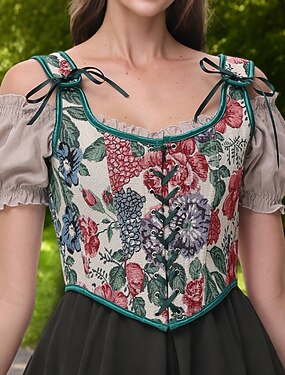 Retro Antiguo Medieval Renacimiento Faja Chaleco corpiño Jacquard Cuadro al Óleo Disfraz Mujer Celta Fantasía Real Víspera de Todos los Santos Carnaval Fiesta Casual Diario LARP Adulto Faja