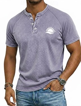 Hombre Graphic Cosecha Lavado Tee Top con cuello henley Camisa lavada Manga Corta Vintage Casual Afligido Casual Diario Exterior Verano Primavera Todas las Temporadas Azul Claro Púrpura Gris Henley