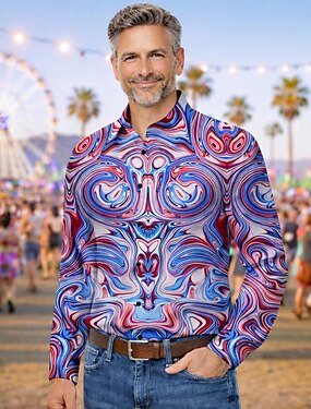 Retro Antiguo Años 70 Camisas Camisa hawaiana Larga Hippie Psicodélico Disfraz Hombre Mascarada Festival de Música Fiesta Ropa Cotidiana Adulto Camisas