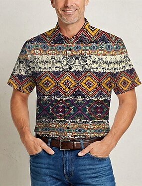Retro Antiguo Hippie Años 70 Camisas Mangas cortas Hippie Retro Bohemio Étnico Disfraz Hombre Festival de Música Fiesta Ropa Cotidiana Adulto Camisas Primavera verano