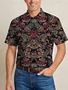 Retro Antiguo Hippie Años 70 Camisas Mangas cortas Hippie Cachemir Étnico Disfraz Hombre Festival de Música Fiesta Ropa Cotidiana Adulto Camisas Primavera verano