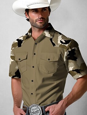 Hombre Color Camuflaje camisa occidental Abotonar la camisa Camisa vaquera Manga Larga occidental retro de la vendimia Exterior Casual Primavera Otoño Cuello Vuelto camisas con cuello Dos bolsillos