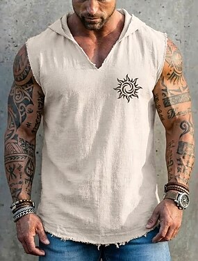 Chaleco con capucha sin mangas estilo boho vintage tribal espiral para hombre, estampado floral, dobladillo deshilachado, corte holgado, ideal para festivales de playa de verano. Tallas: S, M, L, XL,