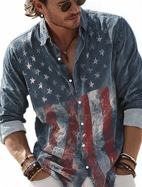 Hombre Bandera estadounidense de los Estados Unidos 4 de julio, 250 aniversario de Estados Unidos Patriótico Camisa Abotonar la camisa Manga Larga retro de la vendimia Festivos Casual Diario