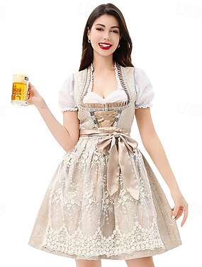 Oktoberfest Vestidos Falda acampanada Trachtenkleader Mucama bávaro Alemán prados Mujer Carnaval Festival de Cerveza Paño de estilo tradicional Vestido Delantal