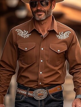 Hombre Voluta Estampado Floral Étnico Camisa camisa occidental Camisa vaquera Manga Larga retro de la vendimia Casual Exterior Para trabajo Verano Primavera Otoño Cuello Vuelto Dos bolsillos