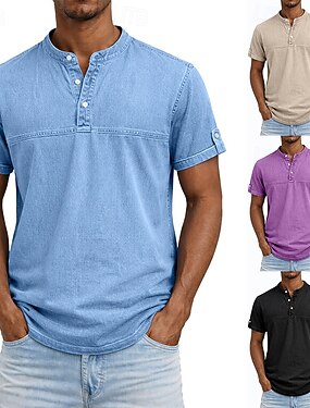Hombre Henley Shirt Camisa 100% algodón con lavado ácido Manga Corta Henley Verano Primavera Otoño Plano Retro Antiguo Casual Estilo retro Lavado Casual Bleu Ciel Marrón oscuro Negro Camiseta